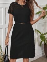 Kadın Kısa Kollu Bisiklet Yaka Dantel Detaylı Düğmeli Modal Elbise