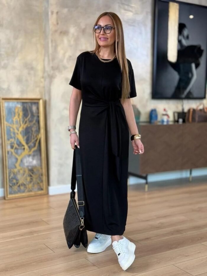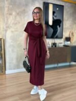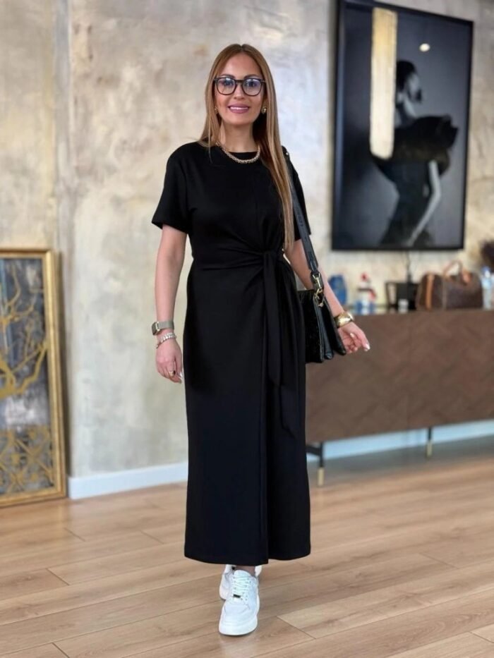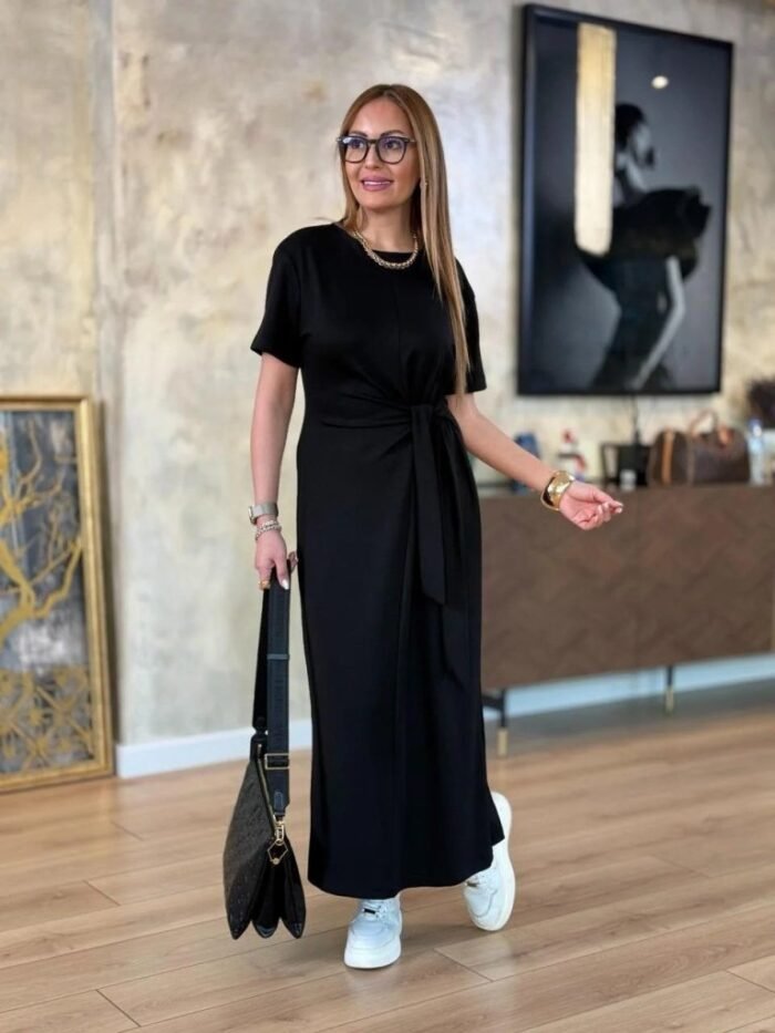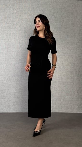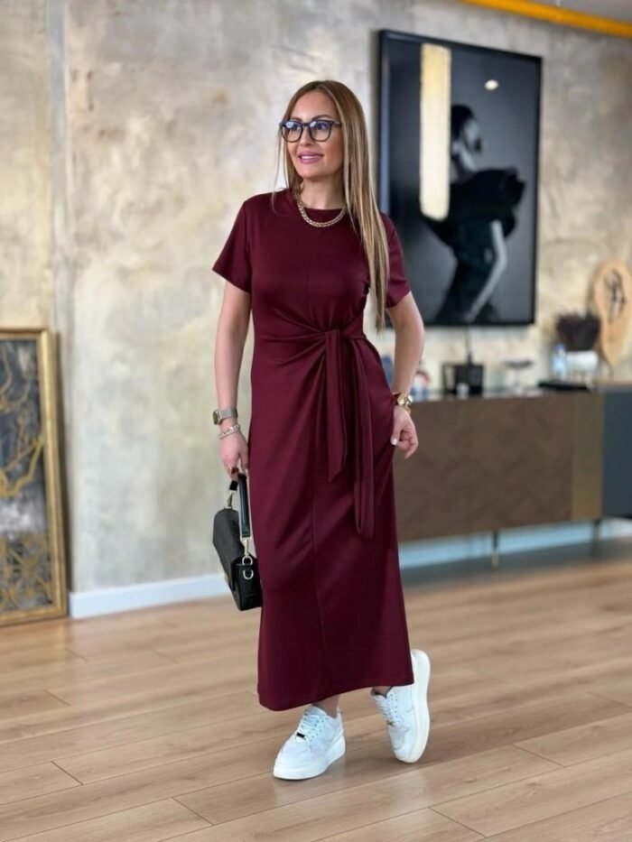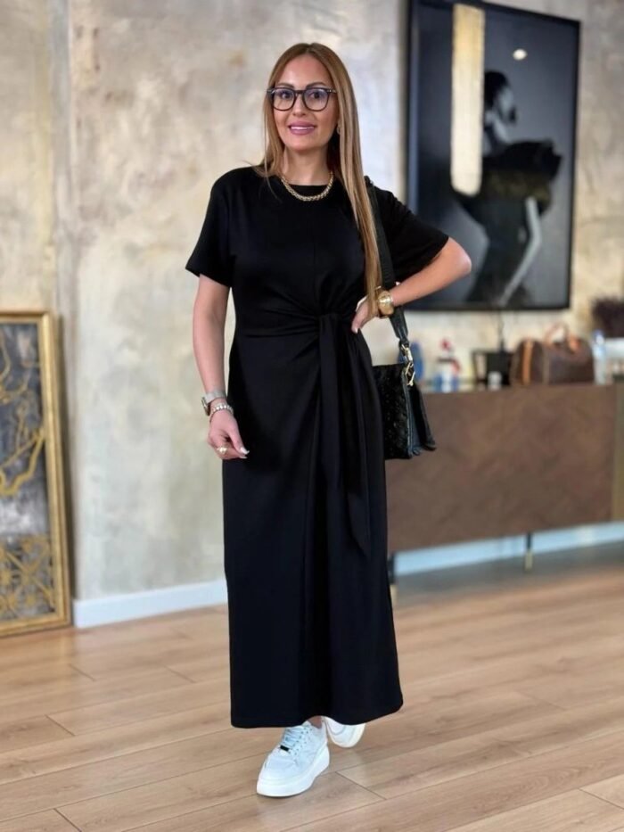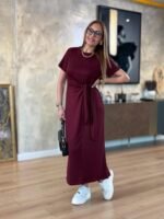 Kadın Kısa Kollu Bisiklet Yaka Yandan Bağlamalı Viskon Iki Iplik Elbise