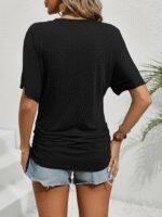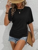Kadın Kısa Kollu Bisiklet Yaka Yanları Büzgü Detay Yarasa Kol Viskon Bluz