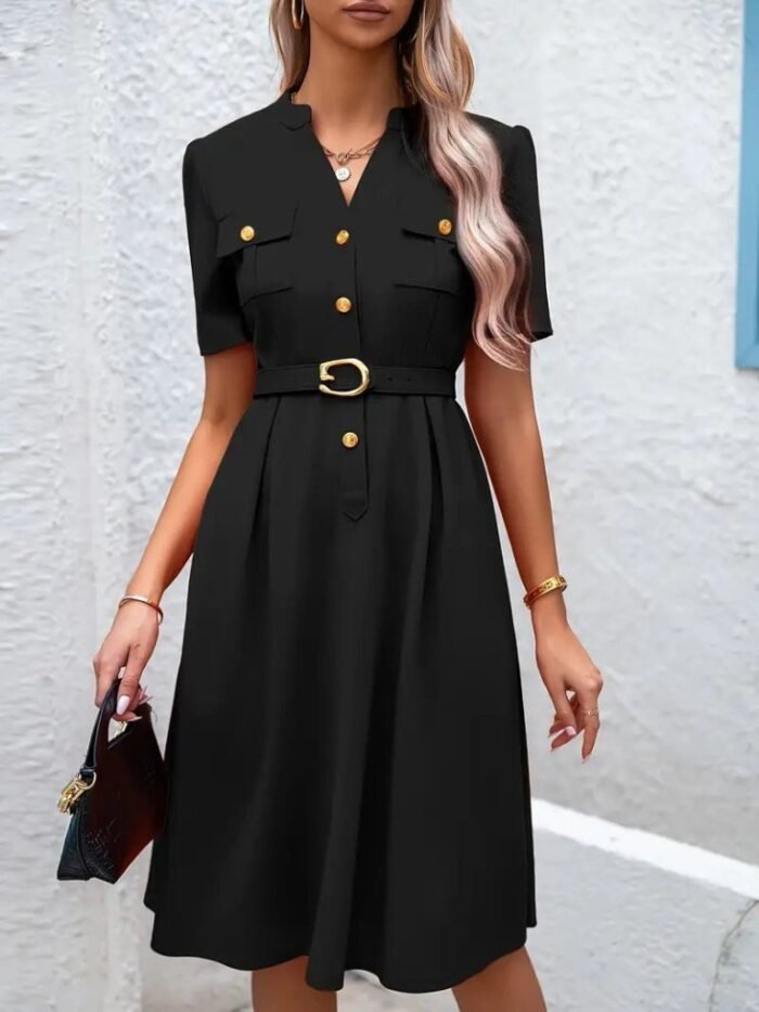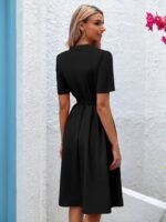 Kadın Kısa Kollu Düğmeli Ve Kemerli Atlas Elbise