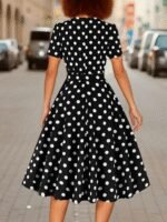 Kadın Kısa Kollu Geometrik Yaka Puantiyeli Kiloş Midi Süprem Elbise