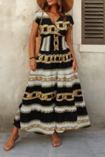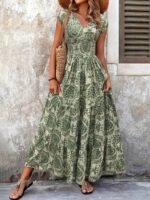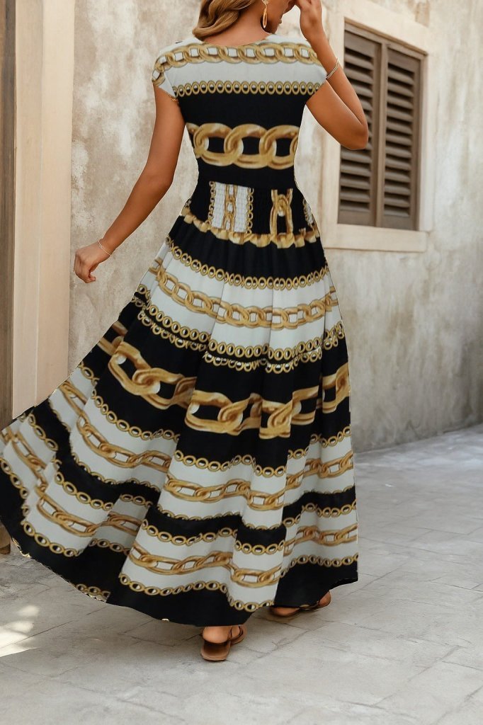 Kadın Kısa Kollu Bisiklet Yaka Belden Lastikli Midi Viskon Elbise