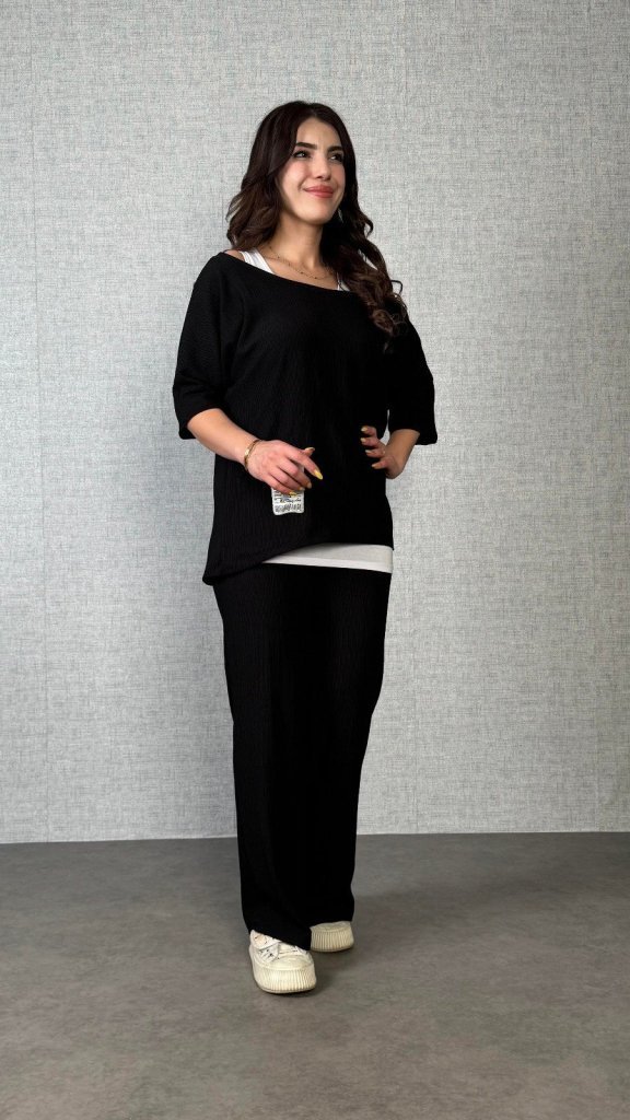 “Kadın Kısa Kollu Omuzlardan Açık Yarasa Kollu Bürümcük Bluz Ve Pantolon Ve Viskon Atlet” için yorum yapan ilk kişi siz olun Yanıtı iptal et