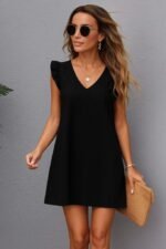 Kadın Kısa Kollu V Yakalı Ithal Krep Elbise