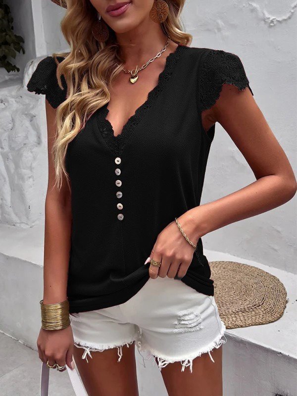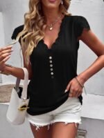 Kadın Kısa Kollu V Yakalı önü Düğmeli Viskon Bluz