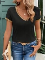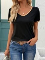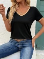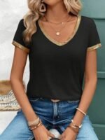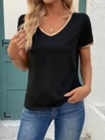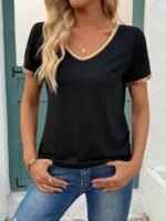 Kadın Kısa Kollu V Yakalı Viskon Bluz