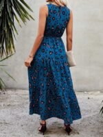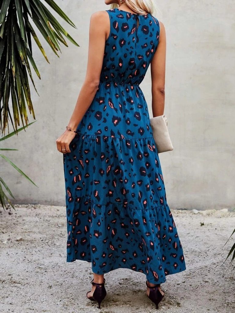 Kadın Kolsuz Bisiklet Yaka Beli Lastikli Desenli Süprem Elbise
