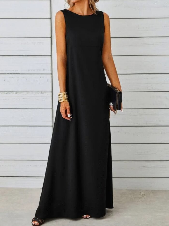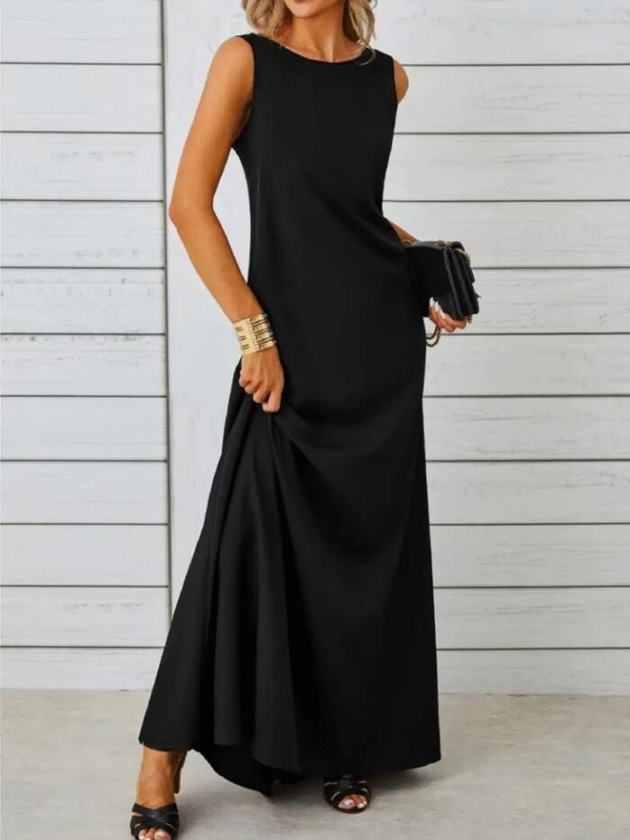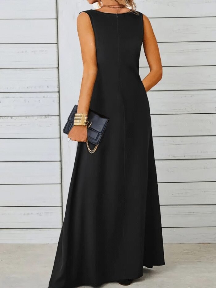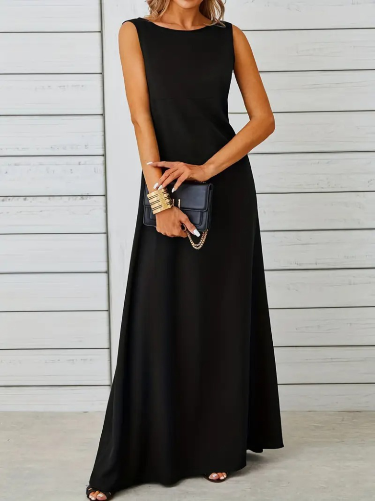 Kadın Kolsuz Kayık Yaka Maksi Janjan Krep Elbise