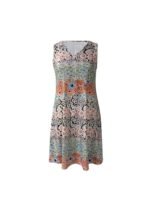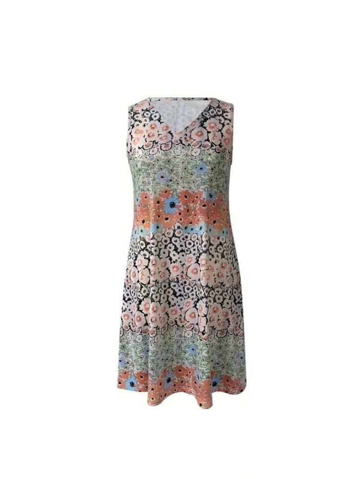 Kadın Kolsuz V Yaka çiçek Desenli Süprem Elbise