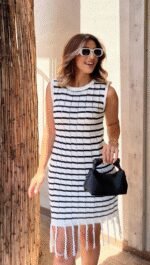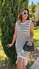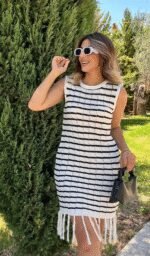 “Kadın Kolsuz V Yaka Eteği Püsküllü çizgi Desen Triko Elbise” için yorum yapan ilk kişi siz olun Yanıtı iptal et