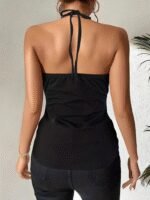 Kadın Kuş Gözü Ve Dekolte Detay Boyundan Bağlamalı Viskon Bluz