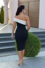 Kadın Omuz Dekolteli Arkası Büzgü Detay Midi Boy Elbise