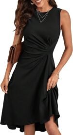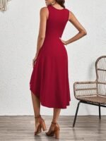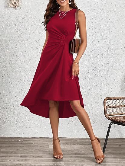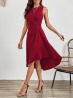 Kadın Sıfır Kollu Bisiklet Yaka Büzgülü Asimetrik Kesim Detaylı Janjan Krep Elbise