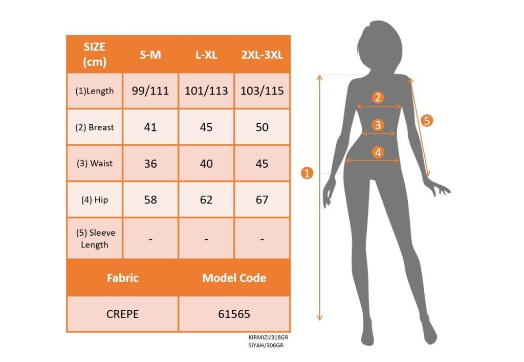 Modelin Ölçüleri: Boy:165, Kg:55, Göğüs:90, Bel:72, Kalça: 100