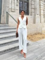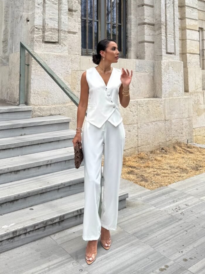 “Kadın Sıfır Kollu çapraz V Yakalı önden Düğmeli Atlas Yelek Ve Pantolon Ikili Takım” için yorum yapan ilk kişi siz olun Yanıtı iptal et