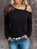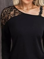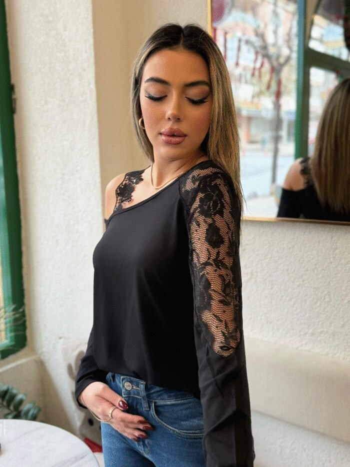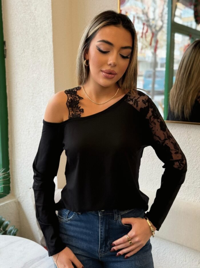 Kadın Tek Omuzu Açık Askılı Dantelli Viskon Bluz