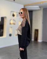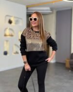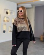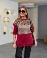 Kadın üç Iplik şardonlu Kumaş Leopar Desenli Bluz
