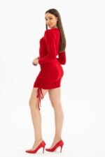 Kadın Uzun Kol Büzgü Detaylı Sandy Kumaş Ayarlanabilir Boy Fırsat Ürün Elbise