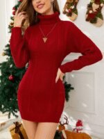 Kadın Uzun Kollu Balıkçı Yaka Kısa Triko Elbise
