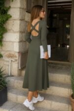 Kadın Uzun Kollu Bisiklet Yaka Arkası çapraz Detaylı Viskon Iki Iplik Maxi Elbise