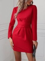 Kadın Uzun Kollu Bisiklet Yaka Bel Kemer Detay Ithal Krep Elbise