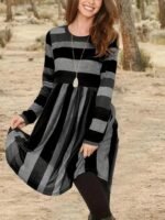 Kadın Uzun Kollu Bisiklet Yaka çizgili Desen Detaylı Süprem Mini Elbise