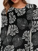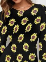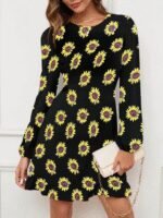 Kadın Uzun Kollu Bisiklet Yaka Desenli Kısa Krep Elbise