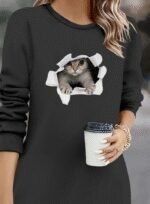 Kadın Uzun Kollu Bisiklet Yaka Kısa Viskon Iki Iplik Elbise