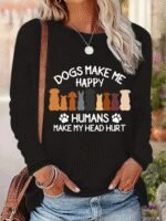 Kadın Uzun Kollu Bisiklet Yaka Köpek Resimli Viskon Bluz