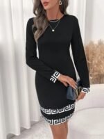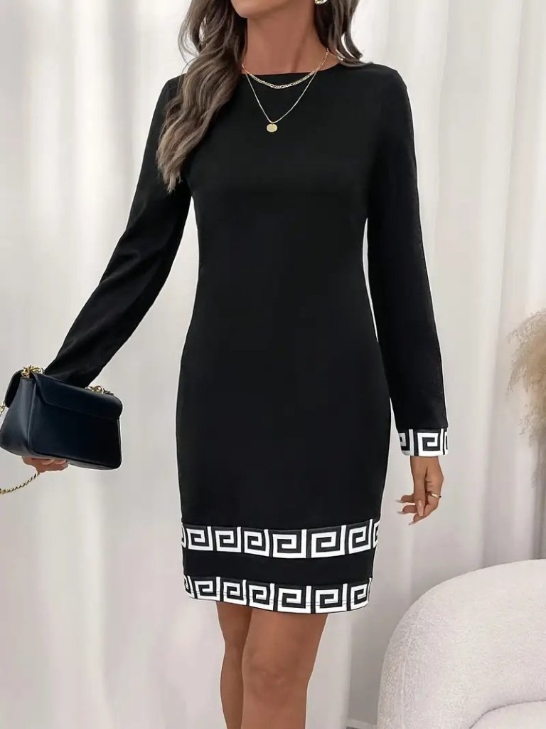 Kadın Uzun Kollu Bisiklet Yaka Mini Ithal Krep Elbise