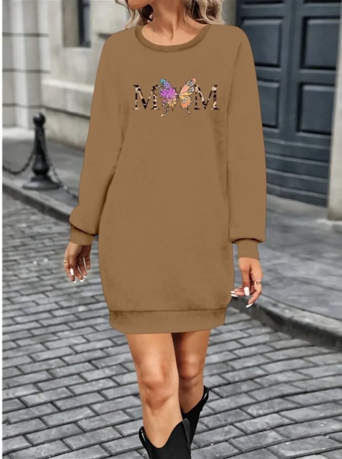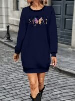 Kadın Uzun Kollu Bisiklet Yaka Viskon Iki Iplik Elbise