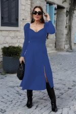 Kadın Uzun Kollu Göğüs Ve Sırt Dekolteli Krep Midi Boy Elbise
