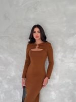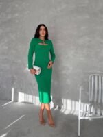 Kadın Uzun Kollu Halka Ve Pencere Dekolte Detay Fırsat ürün Midi Boy Elbise