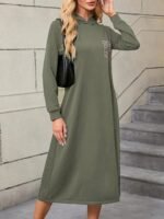 Kadın Uzun Kollu Kapşonlu Cep Detaylı Viskon Iki Iplik Maxi Elbise