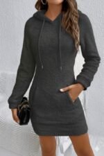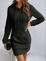 Kadın Uzun Kollu Kapşonlu Cepli Mini Peluş Elbise