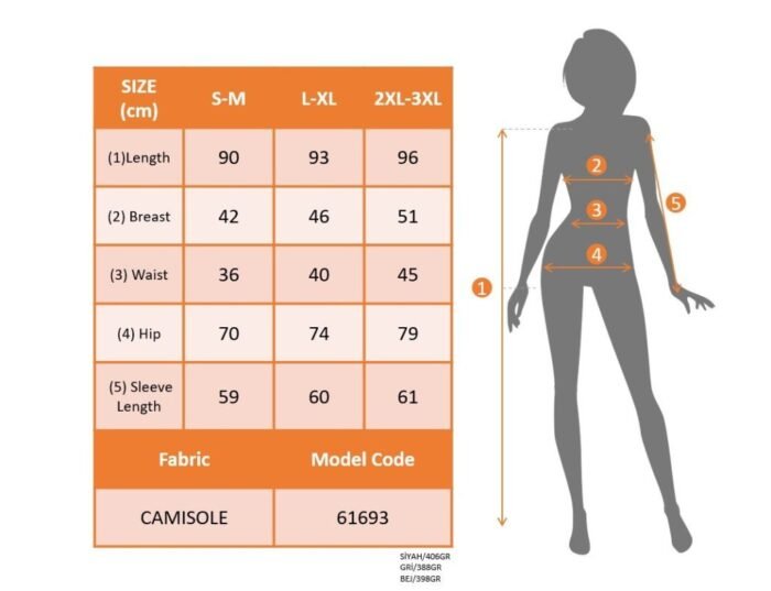 Modelin Ölçüleri: Boy:165, Kg:55, Göğüs:90, Bel:72, Kalça: 100
