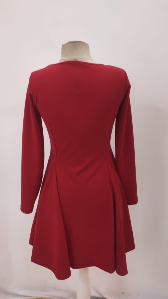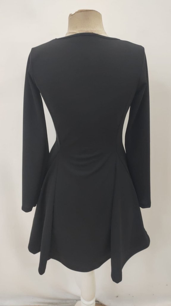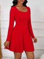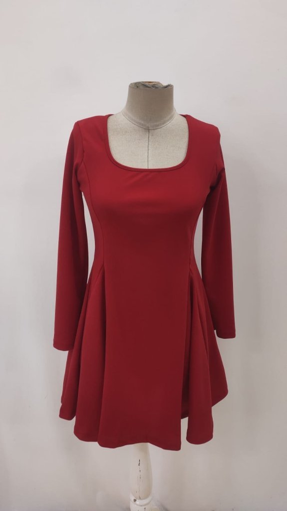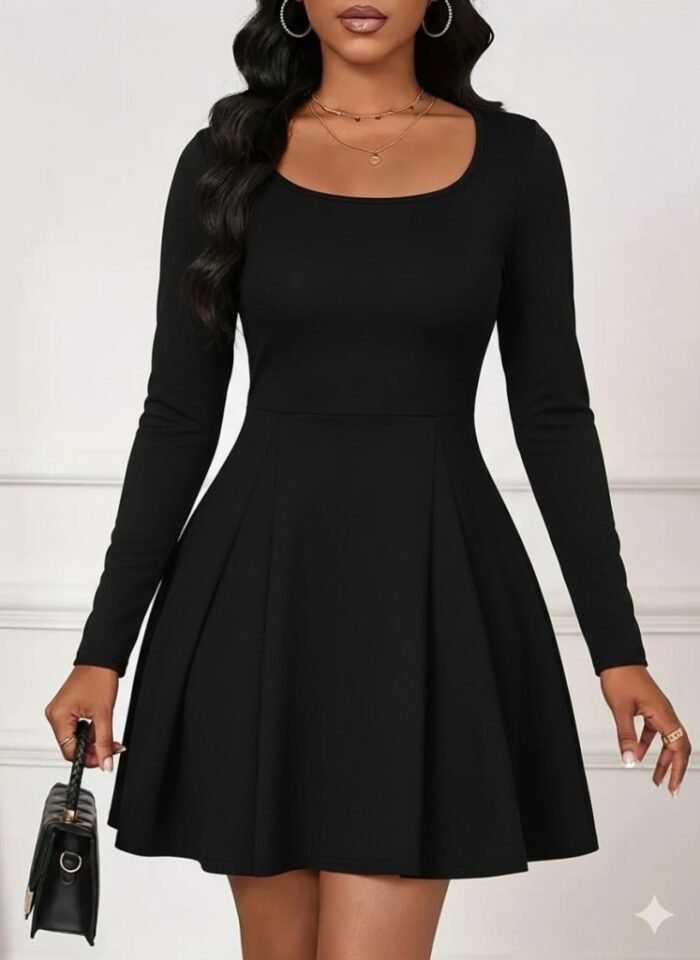 Kadın Uzun Kollu Kare Yakalı Mini Ithal Krep Elbise