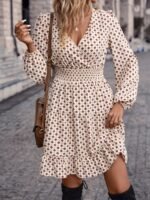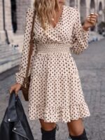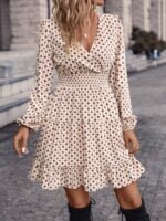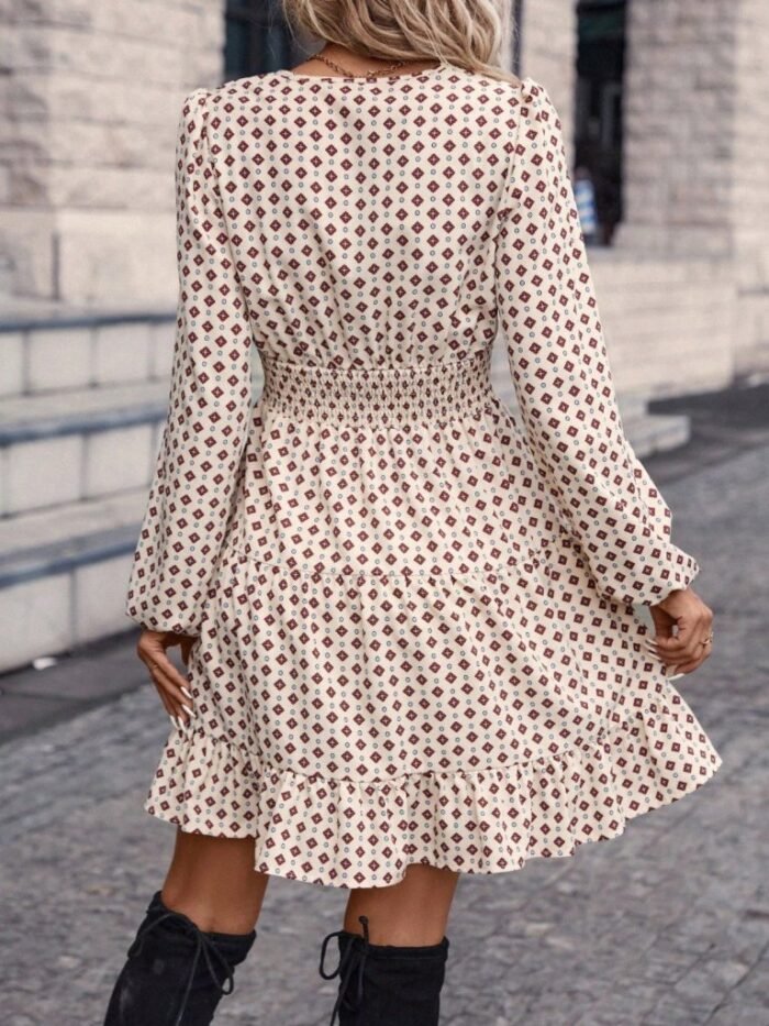 Kadın Uzun Kollu Kruvaze Yaka Desenli Mini Modal Elbise