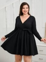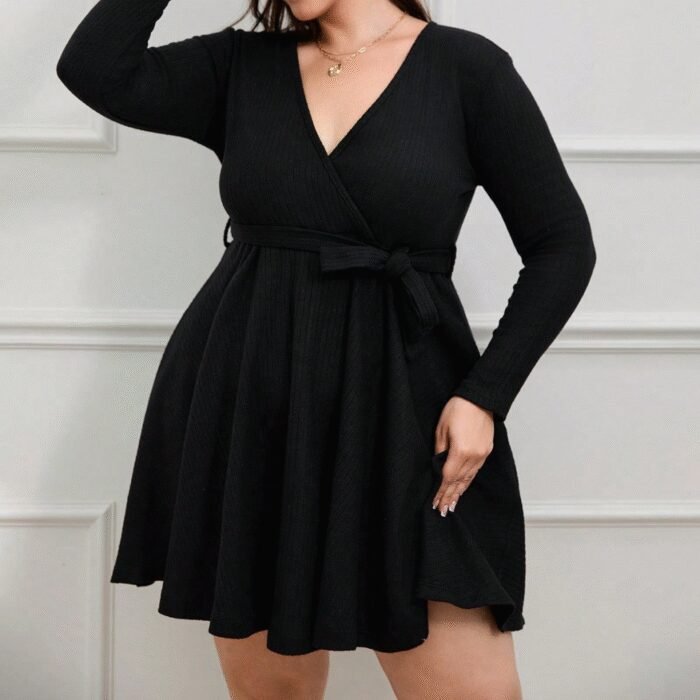Kadın Uzun Kollu Kruvaze Yaka Kuşak Detay Salaş şardonlu Kaşkorse Mini Elbise