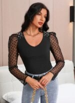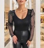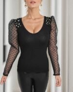 Kadın Uzun Kollu Omuz Inci Kollar Tül Detay Viskon Bluz