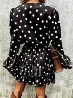 Kadın Uzun Kollu V Yakalı Belden Kuşaklı Puantiyeli Mini Modal Elbise