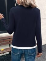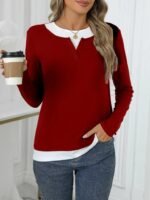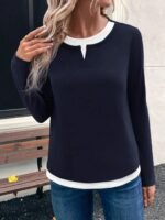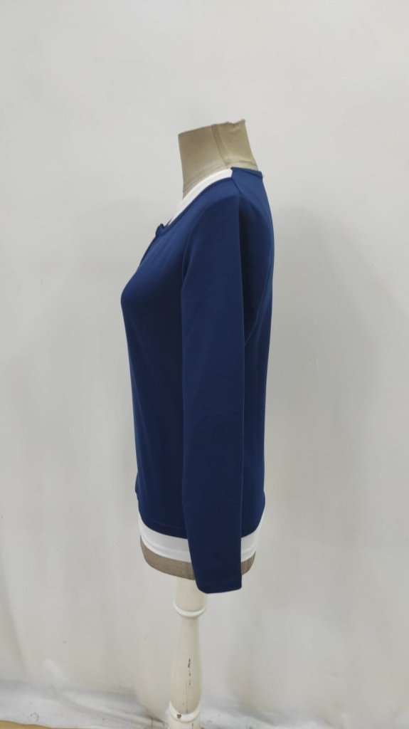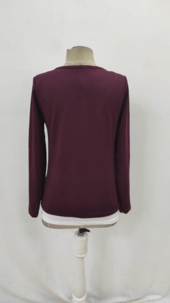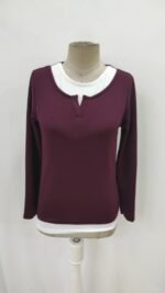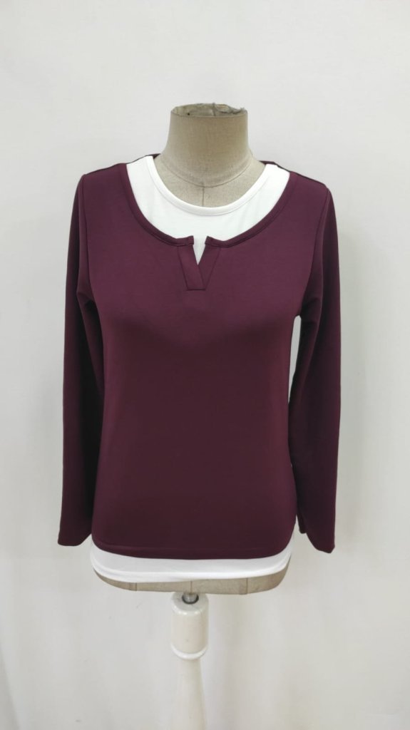 Kadın Uzun Kollu V Yakalı çift Renkli Viskon Iki Iplik Bluz