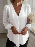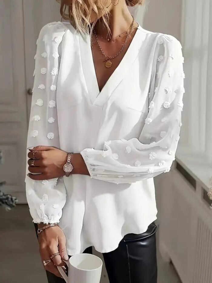 Kadın Uzun Kollu V Yakalı Kolları Popon Detaylı Sandy Bluz