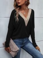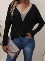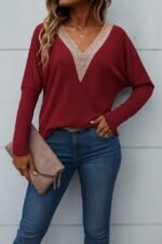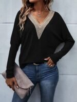 Kadın Uzun Kollu V Yakalı Yarasa Kollu Viskon Bluz