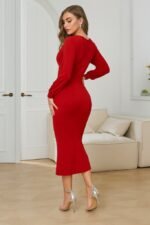 Kadın Uzun Kollu V Yakalı Yırtmaçlı Taşlı Uzun Ithal Krep Elbise