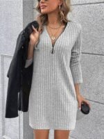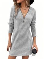 Kadın Uzun Kollu Yakadan Fermuarlı Kısa şardonlu Kaşkorse Elbise