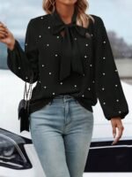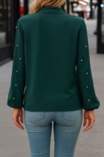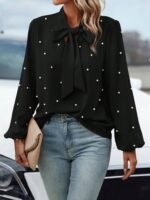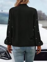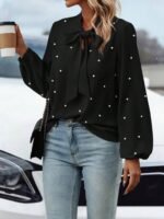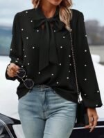 Kadın Uzun Kollu Yakadan Fiyonklu Incili Ithal Krep Bluz