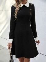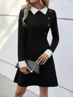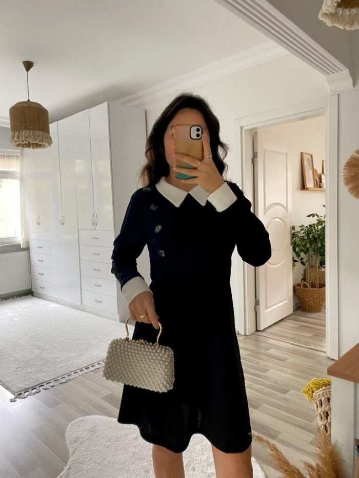 Kadın Uzun Kollu Yakalı A Kesim Kısa Ithal Krep Elbise