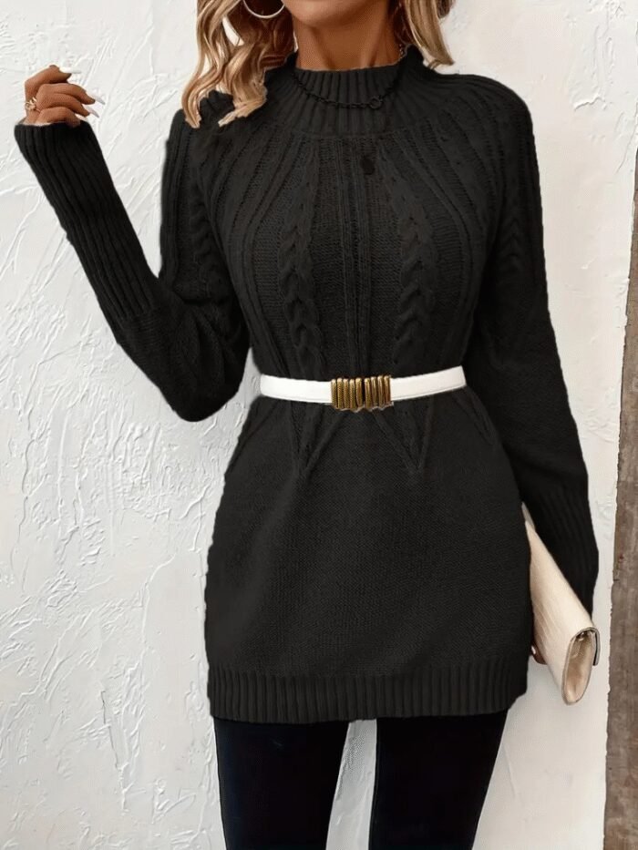 Kadın Uzun Kollu Yarı Balıkçı Yaka Triko Bluz