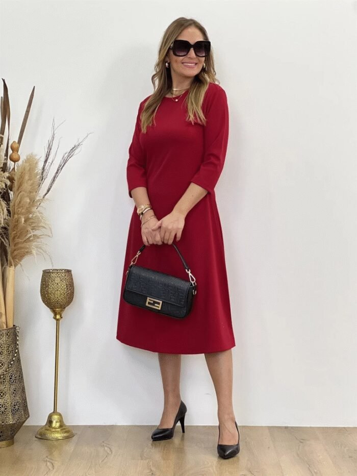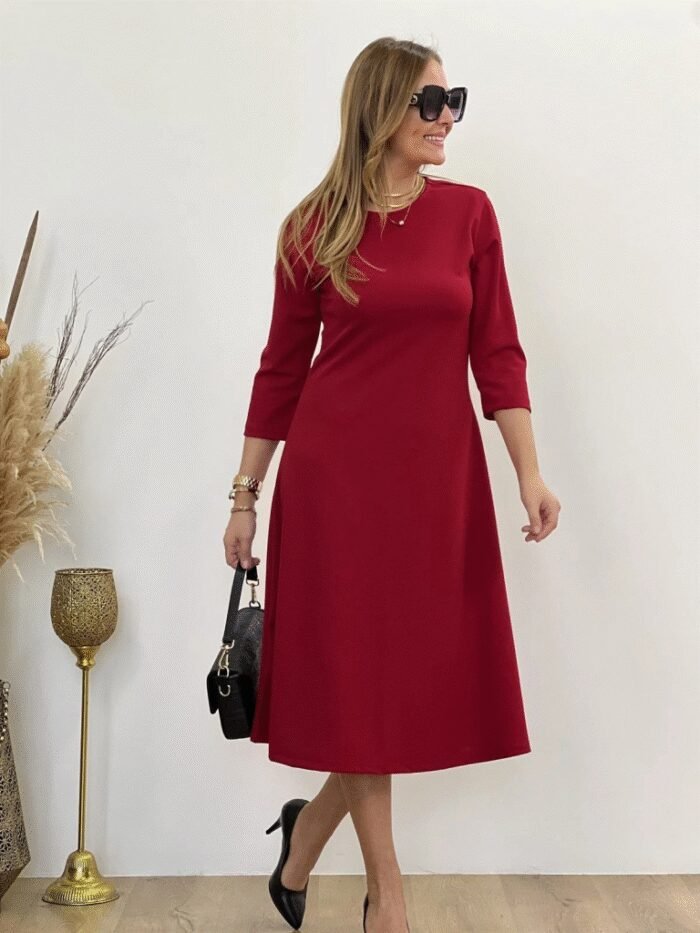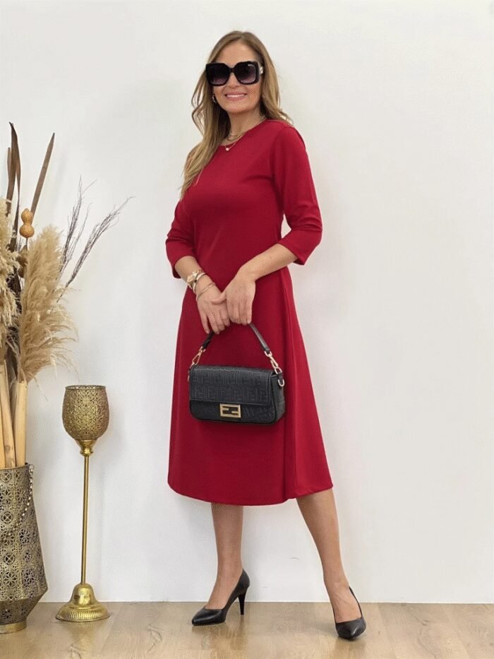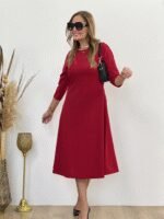 Kadın Uzun Truvakar Kol Bisiklet Yaka Midi Modal Elbise